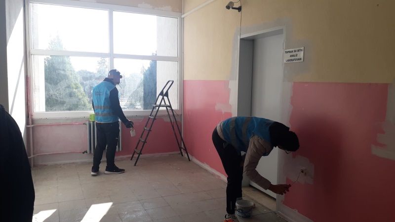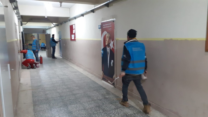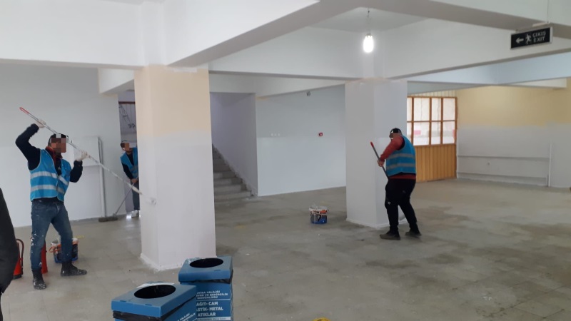 Bu kapsamda; yükümlülerin iş gücünden yararlanmak suretiyle Okulun iç cephe boyası yapıldı. Ayrıca ara tatilde, toplamda 48 derslik 2 ayrı okul boyanarak yeni eğitim dönemine hazır hale getirildi.