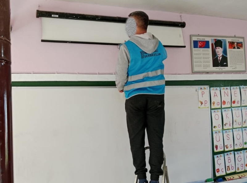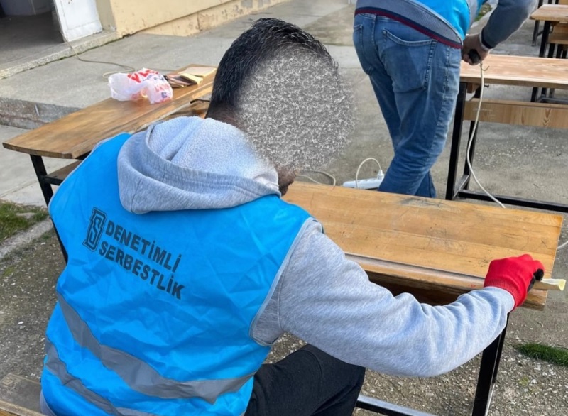 Kamu hizmetinde çalışan Denetimli Serbestlik yükümlülerinin işgücünden yararlanmak suretiyle Delemenler Mahallesine bağlı Güzle İlkokulunda ‘’ Bakım Onarım Faaliyetleri ‘’ gerçekleştirildi.