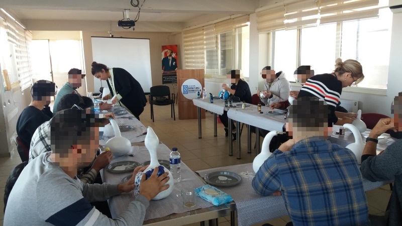 Denetimli Serbestlik yükümlülerinin “boş zamanlarını yapılandırmak suretiyle” toplumla bütünleşme süreçlerine katkıda bulunmak amacıyla “Ebru, Ahşap Yakma, Tual ve Obje Boyama” kursları açılmış olup;