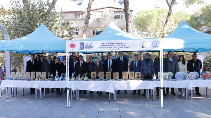 Kurslardan üretilen eserler, Alaşehir Adliyesi önünde açılan “Sanatla Yaşama Tutunuyorum“ sergisinde kamuoyunun beğenisine sunuldu.